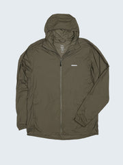Recycelte, atmungsaktive, winddichte, verstaubare Jacke in Olive