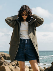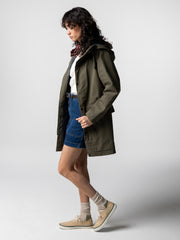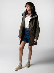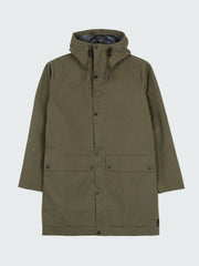 Wasserdichter Parka aus einer Bio-Baumwoll- und recycelter Polyamid-Mischung in Olivgrün