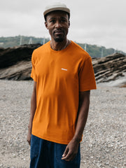 Super soft regenerative organic cotton logo t-shirt in copper orange