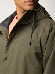Organic cotton and recycled polyamide blend waterproof jacket in olive green