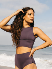 The Iris Scoop Bikini Top is built from traceable 1.2mm Yulex 2.0 foam harvested from the Hevea tree. Offering a little extra warmth than standard swimwear, it has good support, stretch and coverage in a flattering, feminine shape. Details include a high neck and racer back for optimal movement. Perfect for cold water swimming and warm water surfing alike.
