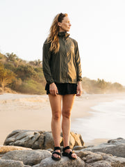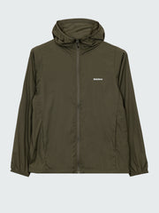 Recycled breathable windproof packable jacket in olive green