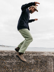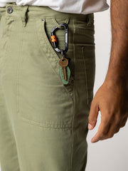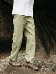 Heavyweight organic cotton workwear trouser in bayleaf green